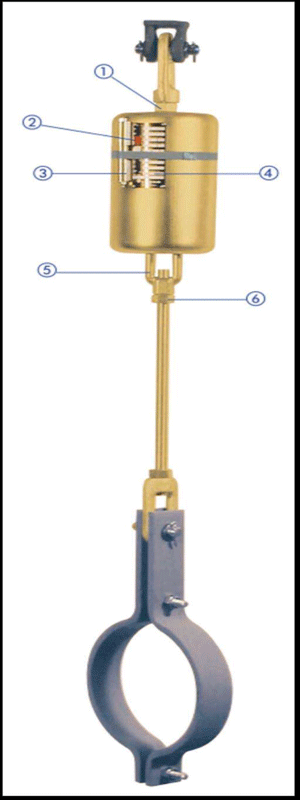 可变弹簧支吊架主要由圆柱螺旋弹簧、位移指示板、壳体及松紧螺母等零件组成。
